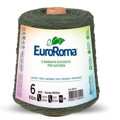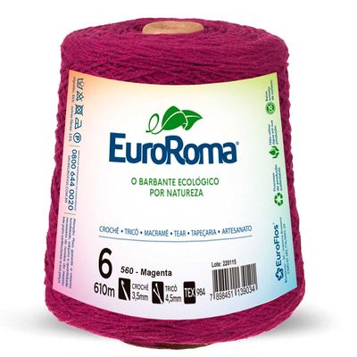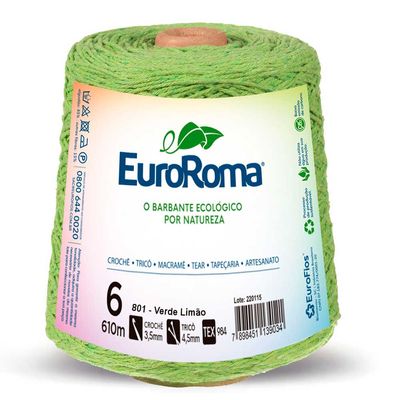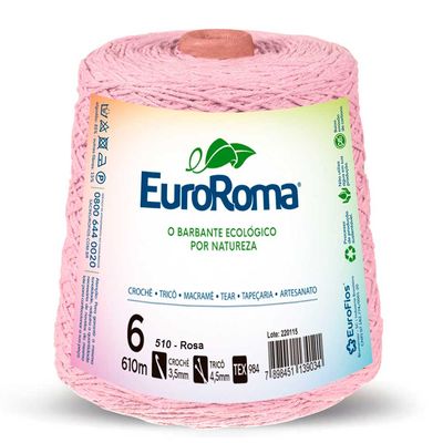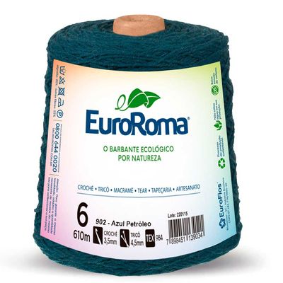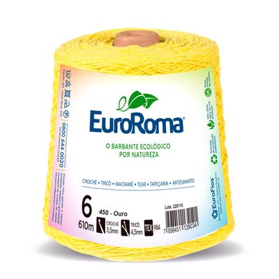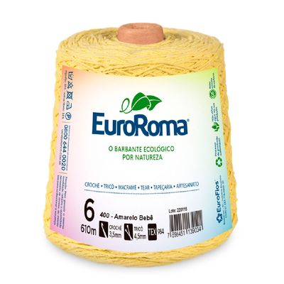 O Barbante EuroRoma 4/6, conhecido também como barbante nº 6, é desenvolvido através de matéria-prima reciclada, produzido de forma sustentável, este barbante apresenta qualidade, beleza e versatilidade.