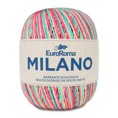Barbante Milano EuroRoma 200g, é um fio multicolor da EuroRoma, muito indicado para confeccionar tapetes e artigos de decoração utilizando a técnica de crochê. O Barbante Milano EuroRoma, possui a espessura de barbante nº 6, é desenvolvido através de matéria-prima reciclada, produzido de forma sustentável, este barbante apresenta qualidade, beleza e versatilidade.