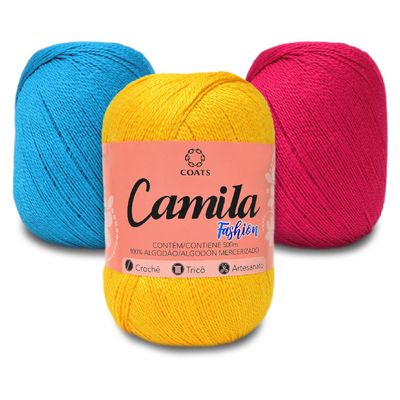 Linha Camila Fashion da Coats Corrente, indicada para quem gosta de realizar artesanato em crochê, tricô, bordados em geral. Com uma espessura de 300 tex e um novelo de 500 metros de comprimento, possui em sua composição 100% de algodão mercerizado, que realça e dá um brilho em seu artesanato.