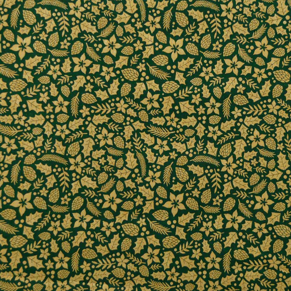 Tricoline Folhas Douradas Fundo Verde é 100% algodão, ideal para trabalhos em vestuário, como camisete, saias, camisa, também indicado para decoração de ambiente, tais quais almofadas, puff, revestimentos de parede, sousplat, lençol de solteiro, muito utilizado no patchwork como jogo de tapete, jogo americano, quilting, colchas, bolsas, estojos e artesanato como lenço e tiaras para cabelo, kit infantil, protetor de berço, almofada de amamentação, babador, nécessaire, revestimento em artesanato de MDF e muito mais. Com largura de 1,50 m você pode trabalhar com estilos de estampas variadas combinando como poá, floral, infantil, arabesco, texturas, coleções de personagens exclusivos e muito mais.