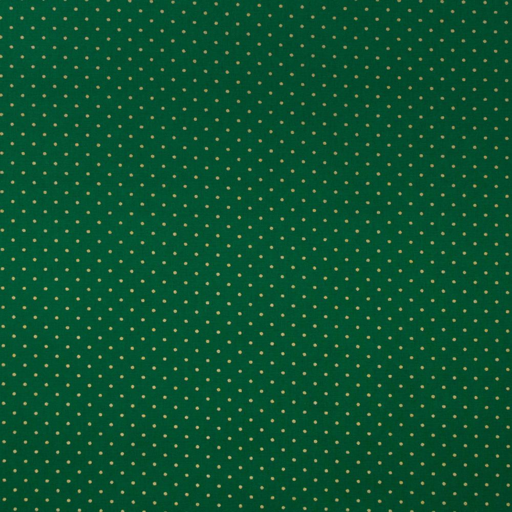 Tecido Tricoline Poá Dourado Fundo Verde é 100% algodão, ideal para trabalhos em vestuário, como camisete, saias, camisa, pijama infaltil e adulto, também indicado para decoração de ambiente, tais quais almofadas, puff, revestimentos de parede, sousplat, lençol de solteiro, muito utilizado no patchwork como jogo de tapete, jogo americano, quilting, colchas, bolsas, estojos e artesanato como lenço e tiaras para cabelo, kit infantil, protetor de berço, almofada de amamentação, babador, nécessaire, revestimento em artesanato de MDF e muito mais. Com largura de 1,50 m você pode trabalhar com estilos de estampas variadas combinando como poás, florais, infantis, arabesco, texturas, coleções de personagens exclusivos e muito mais