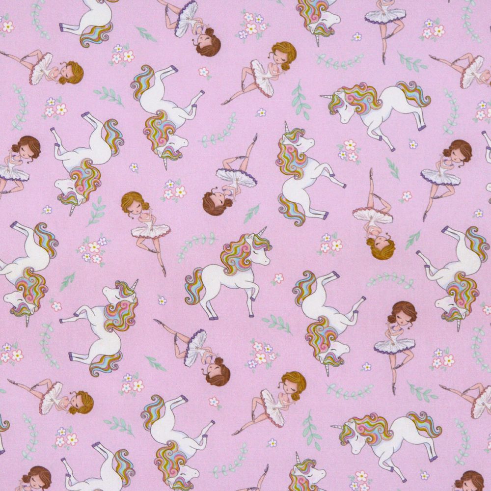 Tricoline Digital Bailarina e Unicórnio Fundo Rosa