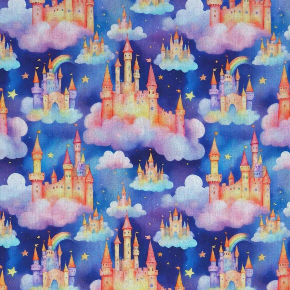 Tricoline Digital Castelos De Princesa é 100% algodão, ideal para trabalhos em vestuário, como camisete, saias, camisa, pijama infaltil e adulto, também indicado para decoração de ambiente, tais quais almofadas, puff, revestimentos de parede, sousplat, lençol de solteiro, muito utilizado no patchwork como jogo de tapete, jogo americano, quilting, colchas, bolsas, estojos e artesanato como lenço e tiaras para cabelo, kit infantil, protetor de berço, almofada de amamentação, babador, nécessaire, revestimento em artesanato de MDF e muito mais. Com largura de 1,50 m você pode trabalhar com estilos de estampas variadas combinando como poás, florais, infantis, arabesco, texturas, coleções de personagens exclusivos e muito mais