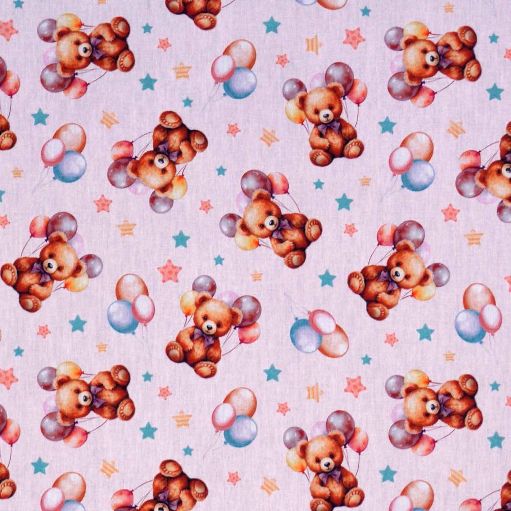 Tricoline Digital Ursinhos E Balões é 100% algodão, ideal para trabalhos em vestuário, como camisete, saias, camisa, pijama infaltil e adulto, também indicado para decoração de ambiente, tais quais almofadas, puff, revestimentos de parede, sousplat, lençol de solteiro, muito utilizado no patchwork como jogo de tapete, jogo americano, quilting, colchas, bolsas, estojos e artesanato como lenço e tiaras para cabelo, kit infantil, protetor de berço, almofada de amamentação, babador, nécessaire, revestimento em artesanato de MDF e muito mais. Com largura de 1,50 m você pode trabalhar com estilos de estampas variadas combinando como poás, florais, infantis, arabesco, texturas, coleções de personagens exclusivos e muito mais