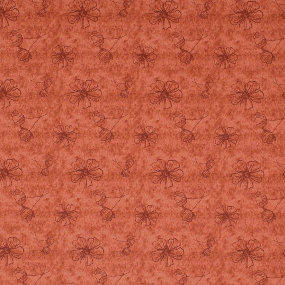O Tricoline Flor Bordô Fundo Vermelho trabalha numa proposta tonal: flores em contorno bordô desenhadas em traço fino e delicado sobre fundo vermelho texturizado. A estampa é discreta pelo contraste sutil entre os tons, mas tem presença pela profundidade que o fundo vermelho confere à composição.