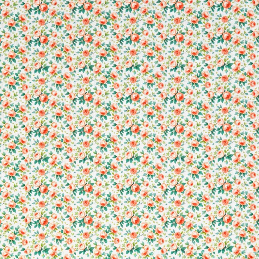 Caimento suave e toque agradável direto na pele fazem desse tricoline 100% algodão uma boa pedida para peças de vestuário de uso diário. As rosas miúdas mantêm a definição e as cores quentes após as lavagens, sem que o salmão perca o tom.