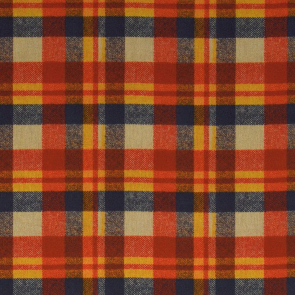 O Tricoline Xadrez Rústico tem o visual encorpado e quente de um xadrez escocês clássico: faixas largas em terracota, azul-marinho, amarelo-ocre e cru se entrecruzam formando blocos generosos com aquela textura visual característica do tartan. A paleta outonal e a escala grande do padrão resultam num tecido com personalidade forte, daqueles que remetem a flanelas e cobertores de fim de ano.